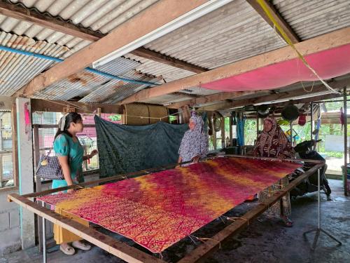วันพุธ ที่ 4 มิถุนายน 2568 นางมุทิตา บุตตะจีน พัฒนาการอำเภอสุคิริน มอบหมายให้ นางสาวคอลีเยาะ ลอแม นักวิชาการพัฒนาชุมชนชำนาญการ และนางสาวนภัตสร จันทร์คง เจ้าพนักงานพัฒนาชุมชนปฏิบัติงาน เยี่ยมให้กำลังใจกลุ่มผู้ผลิต ผู้ประกอบการผ้าลายพระราชทาน ตามโครงการยกระดับการพัฒนาผลิตภัณฑ์ภูมิปัญญาผ้าไทยและงานหัตถกรรม กิจกรรมการประกวดผ้าลายพระราชทาน "ผ้าลายสิริราชพัสตราภรณ์" ประจำปี 2568 ณ ที่ทำการกลุ่ม Ameena Batik สุคิริน หมูที่ 2 ตำบลร่มไทร อำเภอสุคิริน จังหวัดนราธิวาส